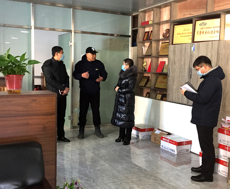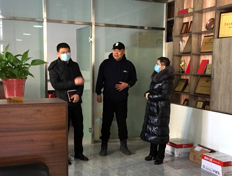 2021年12月01日,牡丹江市愛民區(qū)人大何主任(圖左1),協(xié)同愛民區(qū)營商局主要領(lǐng)導(dǎo)(圖右1),蒞臨我公司考察企業(yè)營商環(huán)境,幫扶企業(yè)解決實(shí)際困難。